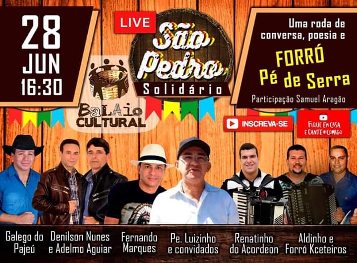 Dia 28/06 Balaio Cultural São Pedro Solidário...